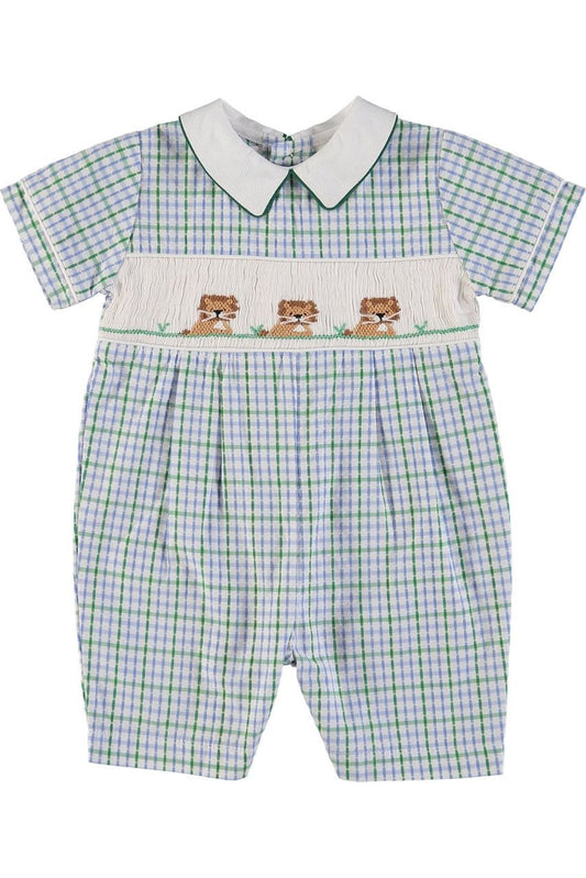 Carriage Boutique Blue Smocked Animals Bobby Suit Shortall