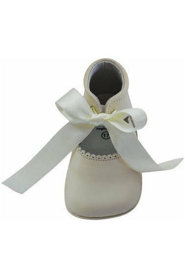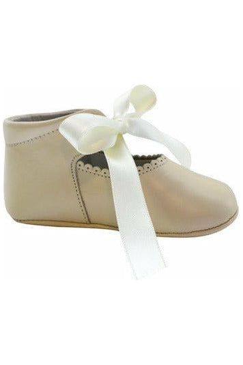 Baby Girl Christening Leather Shoe w/ Satin Ribbon - Beige
