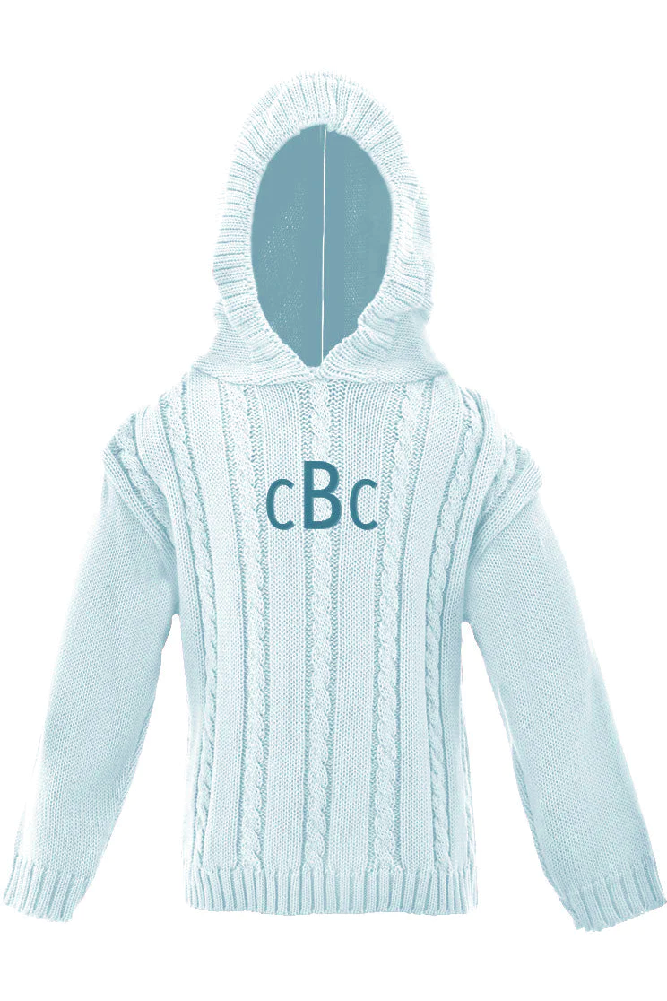 Baby Blue Cable Knit Sweater with Back Zip – Soft Cotton Comfort