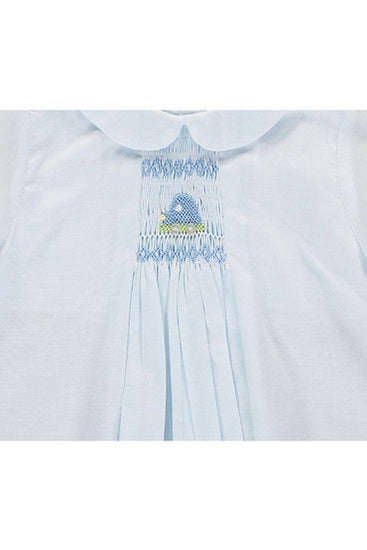 Our talented artisans have meticulously crafted this timeless piece using hand smocking techniques, which not only adds a touch of sophistication but also ensures a perfect fit. The soft, breathable fabric ensures your baby stays cozy and comfortable throughout the day.