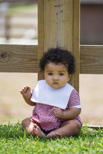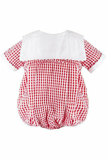 Carriage Boutique Monogram Check Baby Boy Bubble Romper is made from premium soft cotton fabric and features a monogram for a personalized touch. Whether you're a first-time mom or you just want something stylish and comfortable to wear, this romper is perfect for you.