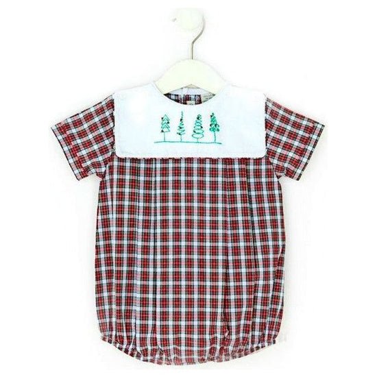 Removable Holiday Baby Bib Plaid Bubble Romper - Christmas Trees